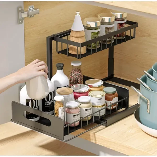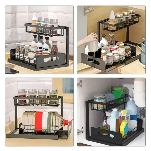 Organizador Doble De Cocina Para Mesada Especiero Estante Color Negro
